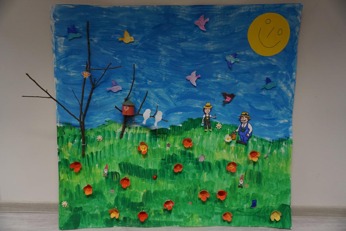 Mit bunter Kreide haben sich die Kinder an unserem Teamgeist ausgetobt. Dieser schmückt jetzt den Innenhof des Hauses, wo ihn die Bewohner*innen immer sehen können. Zur Freude der Frauen und Männer wurde es bei einem Luftballonspiel dann noch einmal richtig laut. Als kleines Dankeschön gab es dann für alle fleißigen Helfer noch etwas Süßes für unterwegs. Und noch ein weiteres Kunstwerk schmückt ab sofort die Seniorenresidenz. Die Kinder der Kinderoase haben ein tolles Bild gestaltet, welches bei den Bewohner*innen super ankommt. Vielen lieben Dank ihr fleißigen Künstler.